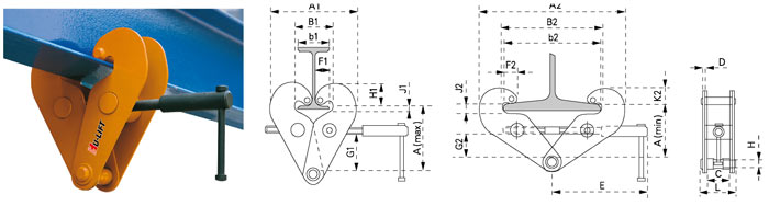 ● 工程力學優化設計,增加載荷分布面積 ● 適用于各類工字梁 ● 符合美國ANSI/ASME安全標準